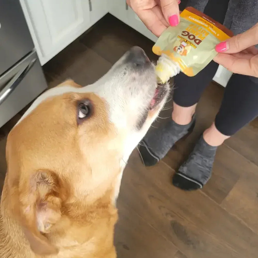 De nombreux beurres de cacahuètes achetés en magasin (même les marques entièrement naturelles) contiennent des sels ajoutés, des sucres ajoutés, des huiles hydrogénées, des cacahuètes grillées (généralement dans des huiles grasses), et dans certains cas des épaississants, des édulcorants et des conservateurs (comme le xylitol) qui sont riches en graisses et toxiques pour votre chien ! Le beurre Poochie ne contient pas de sucre ajouté, pas de sodium, pas de conservateurs et 5 suppléments pour un chien en bonne santé !