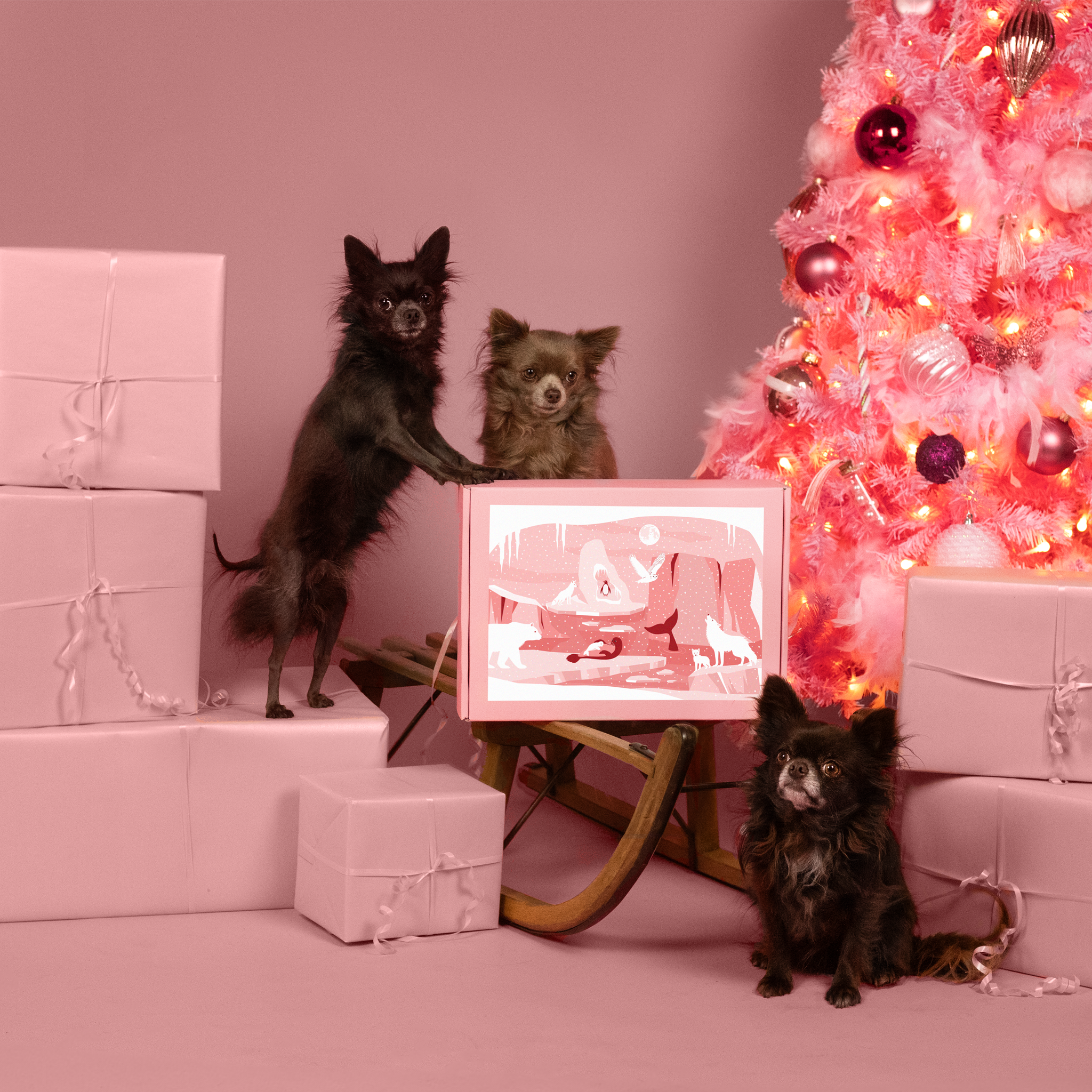 - 3 chiens : mêmes produits de base, mais avec les mastications triplées. Attention, selon la taille des produits et du coffret, il se peut que certains gros articles ne puissent pas être triplés dans la même box (on privilégie alors la variété et la praticité).