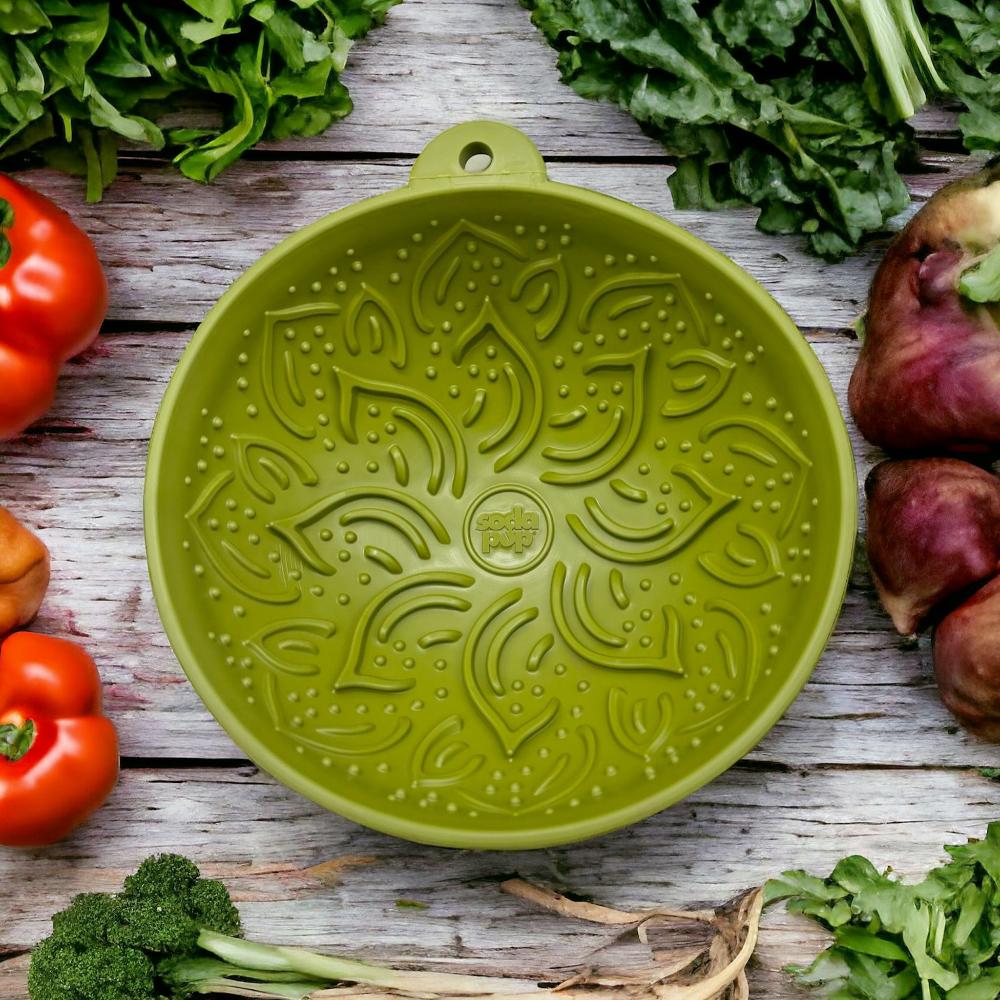 Faites en sorte que l'heure du repas ressemble encore plus à un paradis pour votre ami à quatre pattes grâce à cette gamelle d'enrichissement en caoutchouc durable «Garden of eating Tipsy Bowl». Ce bol unique est un tapis de léchage en trois dimensions qui bascule et se déplace, transformant l'heure du repas en une délicieuse aventure. Il est idéal pour les chiens de taille moyenne à grande ou pour les petits snacks. Étalez la friandise préférée de votre chien sur la surface de cette viande pour offrir un moment de dépense mentale enrichissant, amusant et savoureux.