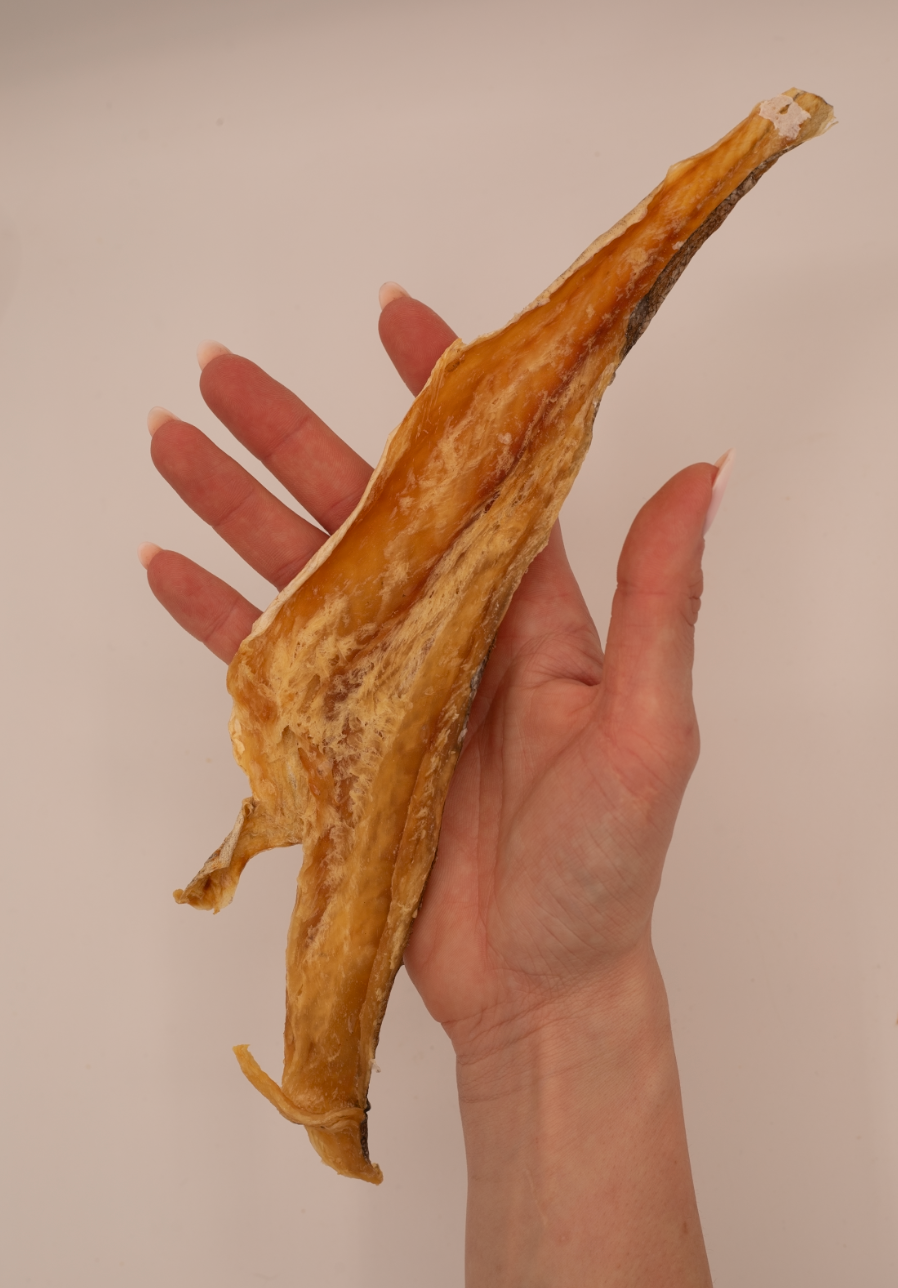 Parce que c'est avant tout une source de protéines de qualité (environ 22g pour 100 g de chair crue soit plus de 70% une fois déshydraté). Parce que c’est une source d’Omega 3 dont le rôle anti inflammatoire et antiagrégant est avéré – limite les risques de thrombose. Par qu’il est riche en protides (acides aminés) excellents pour la croissance. qui renforcent le système immunitaire et aident au développement des muscles. Parce qu’il y a moins de risques d’allergies alimentaires et que le poisson est d’une grande digestibilité. Parce qu’il contient de l’iode pour les poissons de mer, indispensable au bon fonctionnement de glande thyroïdienne. On recommande les poissons gras suivants pour les chiens qui se dépensent beaucoup : hareng, maquereau, thon, saumon, sardine. Et pour les chiens sédentaires les poissons plus maigres : merlu, carpe, merlan, colin, panga, bar, lieu, cabillaud, gardon, églefin, brochet, sole, limande sole, daurade, lotte, raie, rouget, roussette, turbot et espadon.