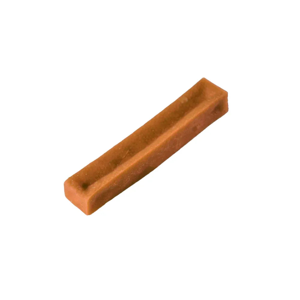 Inspiré du célèbre "Churpi" de l’Himalaya, ce fromage à mâcher était à l’origine destiné à la consommation humaine avant d’être adopté par les chiens pour son goût irrésistible et sa texture résistante. Aujourd’hui, il est fabriqué en Belgique, selon un savoir-faire artisanal, avec du lait de vache écrémé de haute qualité, pressé et affiné pendant 3 mois pour obtenir une texture dure et longue à mastiquer.