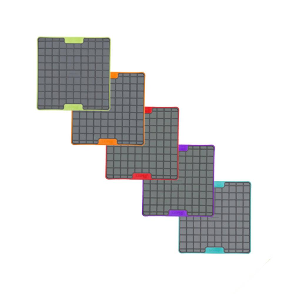 The Lickimat® Playdate has a simple surface suitable for most dry, moist or liquid foods (pâté, yogurt, broth, mixed fruit, etc.).