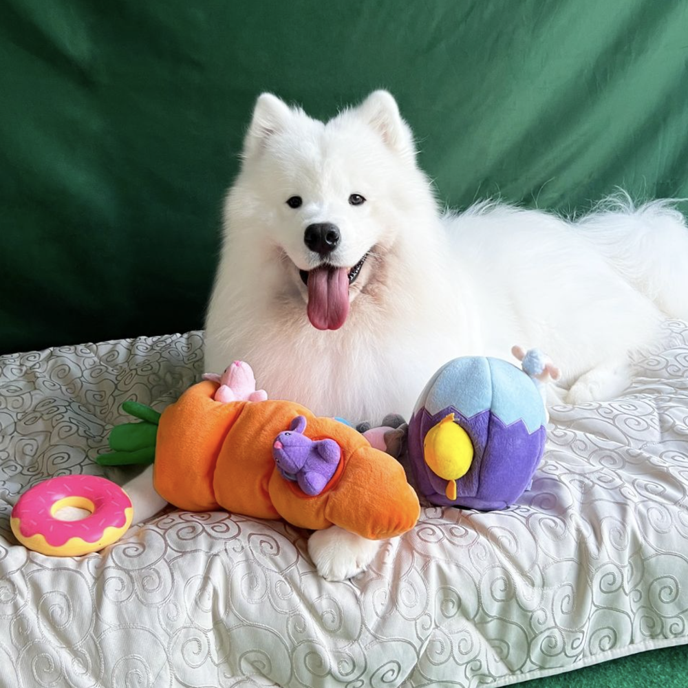 This Zippy Paws Easter Carrot flair plush is ideal as an occupation toy for your dog or pup.